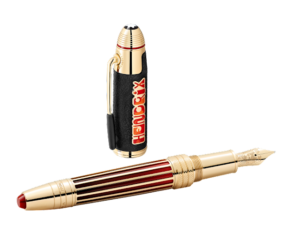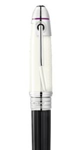 Um design inteligente em que se deve desatarraxar o cano para expor a ponta em vez da tampa: o que parece ser o topo da tampa na verdade serve como cone e vice-versa. O topo da tampa é composto por uma sobreposição esqueletizada de ouro branco 18 quilates, esculpida com um sinal da paz e o emblema Montblanc para revelar a cúpula azul abaixo. E o anel de laca vívida sob a cúpula é inspirado na faixa de cabeça rosa choque que Hendrix usou no palco de Woodstock, enquanto a palavra “Woodstock” está impressa na parte superior do clipe.
