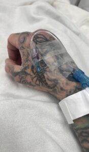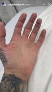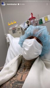 Travis Barker, baterista dos Blink-182, partilhou fotos na sala de operações. As imagens foram divulgadas nos Stories do Instagram do artista.