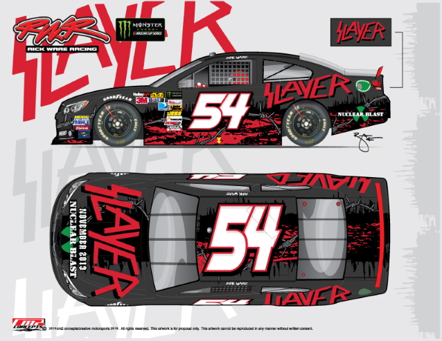 A banda icónica de thrash metal, Slayer, vai-se juntar à Rick Ware Racing como principal patrocinador do carro No. 54 na Bristol Motor Speedway, para promover a última tourneé mundial da banda. A pilotar o Slayer Chevrolet vai estar o veterano da NASCAR Cup Series Monster Energy, JJ Yeley.