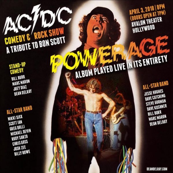 A homenagem terá início com um espectáculo de stand-up com os comediantes Dean Delray, Bill Burr, Marc Maron e Joey Diaz seguidos pela performance onde os músicos irão tocar o clássico disco “Powerage” (1978) dos AC/DC na íntegra.